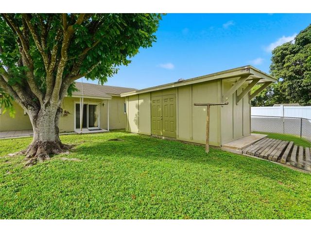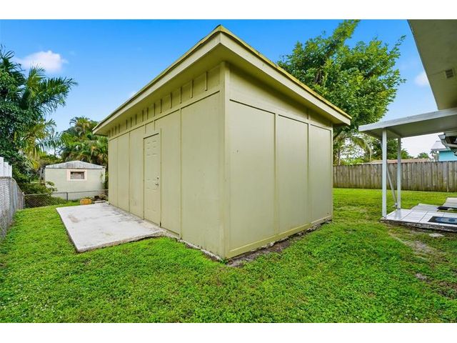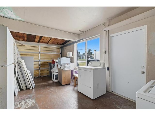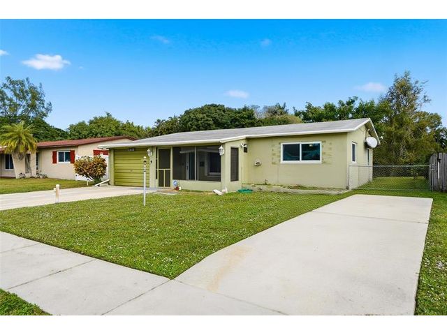 Old Florida Gem! This tranquil & charming home is lovingly owned and maintained by one family for over 50 years. Located in an established friendly neighborhood .Features 3 bedrooms,(murphy bed in front 2 bedrooms) 2 baths, eat-in kitchen, family room/den, interior utility room and a one car garage. Impact windows & doors, security system, 2025 HVAC. Enter the home via the screened in porch perfect for sunset views. Ample parking w/additional concrete slab for extra vehicles or other. Bonus is a large workshop with electric on a concrete slab outback for the hobbyist/tradesperson. Large covered patio and spacious fenced yard. Short commute to Publix, the Beaches, fine Dining, Hard Rock Casino, houses of worship, NSE University & others .Rare opportunity to make this gem your own.