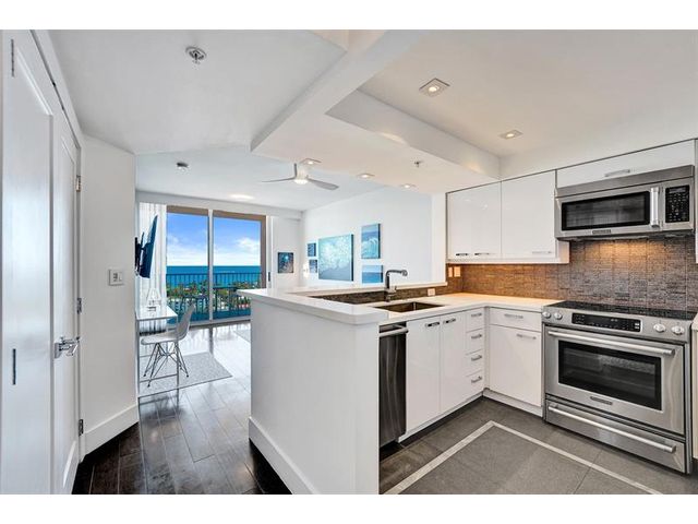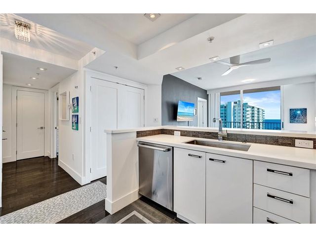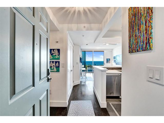 ABSOLUTELY GORGEOUS OCEAN VIEWS from EVERY ROOM in this STUNNING JEWEL of a condo. This BEAUTIFUL home promises Coastal Breezes and SUN DRENCHED days as a welcome addition to your lifestyle! The OPEN KITCHEN has decorator cabinets and a stunning inlaid floor! Rich hardwood floors run thru-out this modern home with the addition of DESIGNER TILE in the FULLY RENOVATED KITCHEN and BATH. An open living room leads out to a spacious PRIVATE balcony overlooking the sparkling BLUE OCEAN. This impeccable home is renovated from top to bottom with fantastic finishes, lighting, and details! W/D in unit, Gated parking! 1 Parking space with an additional space available for purchase. 24hr security, 24HR GYM, TENNIS, POOL/SPA. Walk to BEACH, RESTAURANTS, BARS, AND WATER TAXI. PET FRIENDLY!! EASY TO RENT!