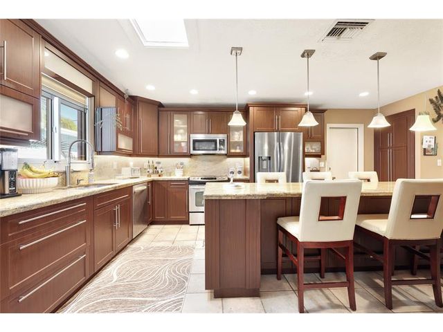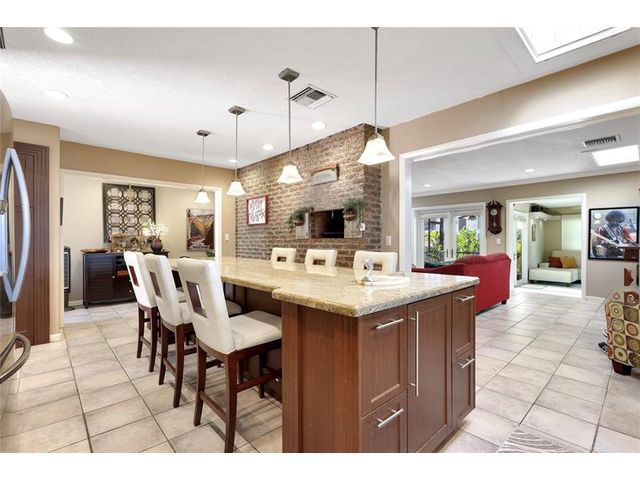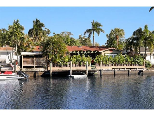 Waterfront Living with OCEAN ACCESS & Dock. No Fixed Bridges. Updated 3 bedroom plus a den, 2 bath home with 2 car garage. Your private oasis backyard with boat dock for all your water toys, shed, resort style deck for entertaining with water views. Step inside & enjoy the cozy fireplace, remodeled kitchen which includes a built in BBQ, wood cabinets & granite countertops, tile floors throughout, impact windows & doors & is on a quiet cut-de-sac with no HOA or Rental Restrictions. Call today for a showing!