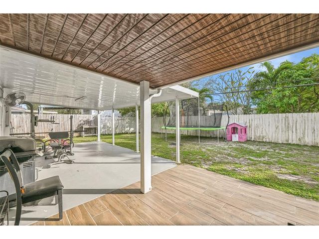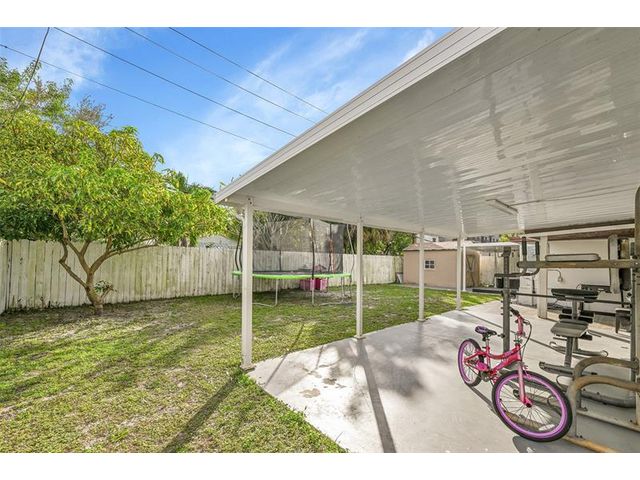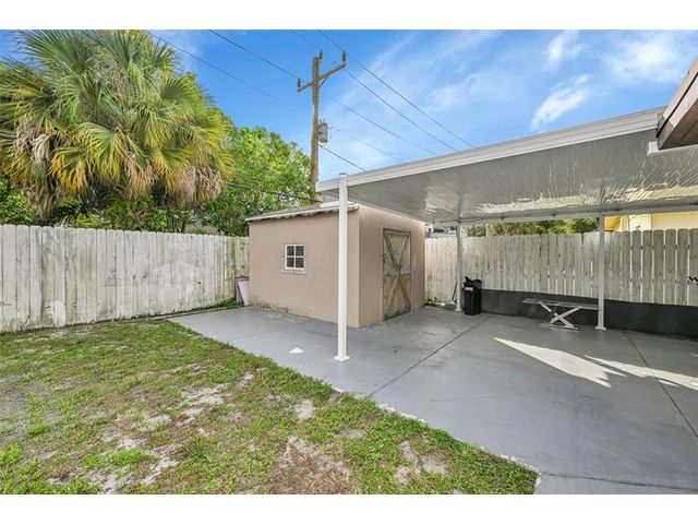 Completely remodeled three bedroom, two bath single family home featuring a large backyard and oversized side yard, perfect for outdoor living. Enjoy a covered patio ideal for relaxing or entertaining. The home offers a spacious driveway, separate laundry room, and a nicely updated kitchen. Hurricane impact windows throughout provide added peace of mind. The property also includes a solid concrete shed in the backyard, offering great potential for a home office, studio, or additional flex space. Excellent location close to schools, shopping, and major highways. Move in ready.