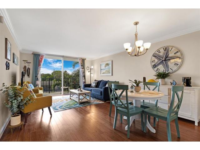 Bright & impeccably maintained 1-bed 1.5-bath featuring a beautifully updated kitchen open to main living area. Spacious living-dining combo boasts elegant wood flooring & crown molding. Large primary bedroom w/ chic barn doors, walk-in closet, office nook, updated bath & spa tub. Impact windows/doors overlooking daily sunsets from private balcony. New AC & tankless water heater. Maintenance includes premium cable TV, high-speed internet, & FREE laundry. Extra storage space & secure gated parking. Riverfront building, heated pool, sundeck, stunning lobby renovation, modernized elevators, & sleek community room update. 40 year inspection complete, reserves/strong financials. Walkable to Wilton Manors, minutes to Downtown Fort Lauderdale, I-95, & the beach.