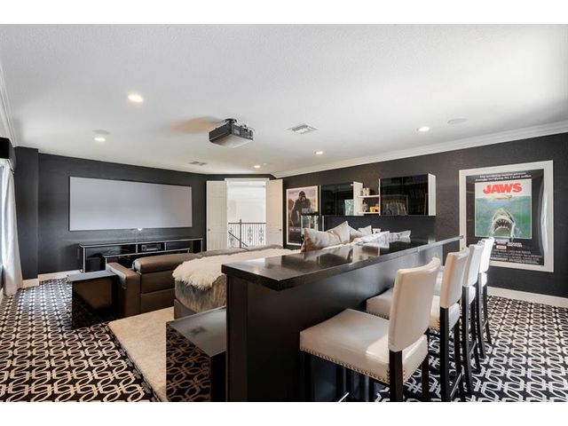 Set on one of the most exceptional lots in Long Lake Ranches, this stunning Renoir model offers the best view in the community. The one-of-a-kind floor plan is bright, functional, and immaculately maintained, featuring expansive windows and beautiful architectural detail. All five bedrooms include ensuite baths and walk-in closets, with rare his-and-her walk-in closets in the primary suite. A loft ideal for a pool table opens to a private theater with full bath, serving as an optional sixth bedroom. A stylish office with wine bar and adjacent bath adds flexibility. The resort-style backyard features an oversized pool and spa, tiki hut with swim-up bar, outdoor kitchen, cabana bath, and a magnificent fire feature—perfect for entertaining and enjoying ultimate privacy.