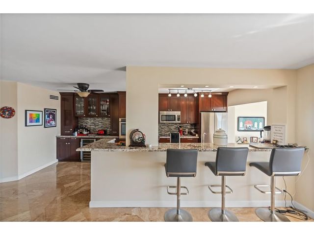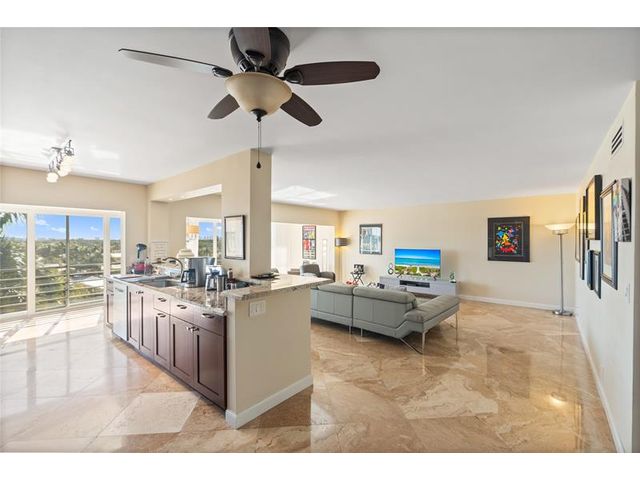 Beautifully Updated Waterfront Condo may be the best in the building! This Winston House 2-bed, 2-bath condo offers breathtaking views overlooking the Coral Ridge Country Club neighborhood. The spacious living area is bathed in natural light through large impact sliding glass doors, seamlessly connecting indoor and outdoor spaces. A extra large, modern open kitchen enhances the flow of the living area, perfect for both relaxation and entertaining. The primary bedroom features an en-suite bath that flows to a generous walk-in closet, while the second bedroom provides flexibility for guests or a home office. Enjoy the convenience of an in-unit washer and dryer—a rare find! This prime location is just moments from the beach, restaurants, and premier shopping. Plus, newer roof on the building!