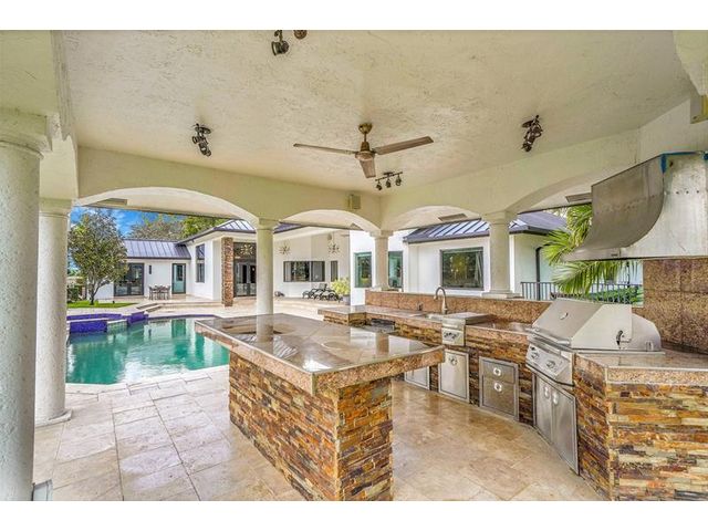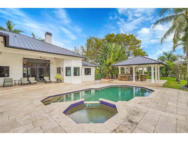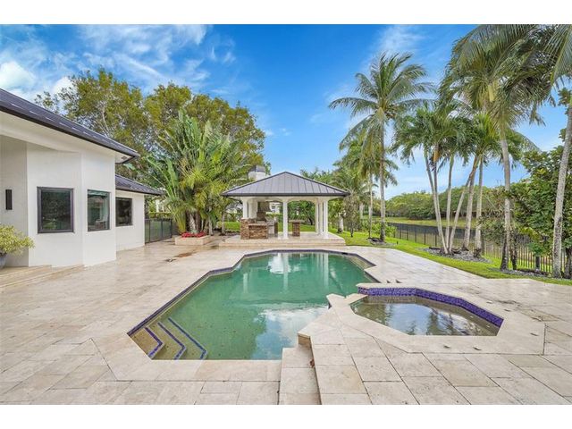 Windmill Ranch is Weston's most prestigious and unique community. This exquisite luxury home was recently completed remodel inside and out includes a grand circular paver driveway, a spectacular master suite, gourmet kitchen with a huge center island, a theatre, office, split plan, each bedroom has its own bathroom and closet. An amazing patio, perfect for entertaining, an oversized pool with spa and a summer kitchen/Gazebo. New metal roof and hurricane impact windows and French doors. Exterior is painted recently, lush landscaping. One-of-a-kind home, a must see, the home is price to sale. A+ schools.