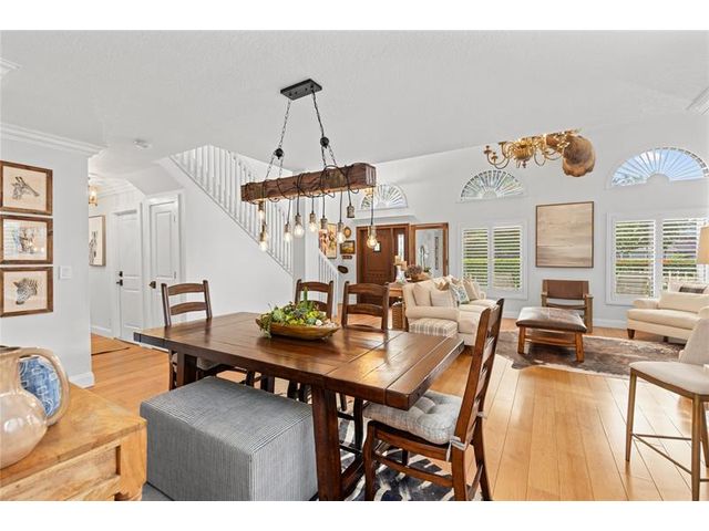 Lovely, spacious, and light-filled two-story home located on a quiet cul-de-sac. This open floor plan features wood floors, soaring ceilings, 3 bedrooms, 2.5 beautifully renovated bathrooms, and over 2,500 sqft of indoor living space. The renovated kitchen offers modern finishes along with a new refrigerator and dishwasher. Impact windows throughout, and updated details make this home truly move-in ready. Enjoy outdoor living with a screened-in patio, built-in outdoor kitchen, pavered areas, and lush landscaping, perfect for entertaining and family living. The community offers scenic walking trails, plus a beautiful clubhouse with tennis and pickleball courts, a golf course, gym, resort-style pools, and on-site restaurants that serve as the main social and amenity hub for the area.