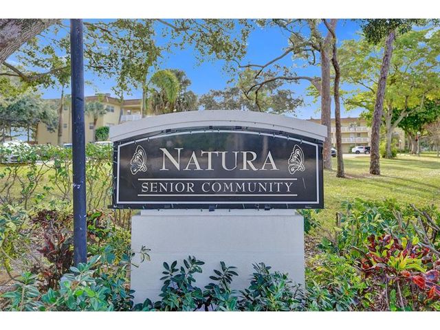 Beautifully updated 1BR/1.5BA condo in the desirable 55+ Natura Condo Community. Enjoy tranquil views of mature trees with the lake just beyond. This move-in ready residence features an open kitchen with updated cabinetry, counters, and backsplash, modern flooring throughout, and a spacious bedroom with walk-in closet and ensuite bath showcasing a marble shower. The updated guest half-bath adds convenience, while central A/C (approx. 4 years old) offers peace of mind. Bright, clean, and impeccably maintained. The community offers scenic lakes, walking and biking paths, a heated pool, and an active clubhouse with weekly activities. Building has passed 40 year inspection, new roof 2024 & elevator 2025. Ideally located minutes to Deerfield Beach, shopping, dining, and I-95.