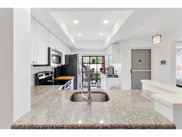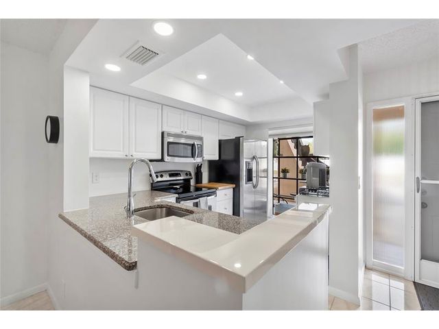 FINANCE WITH 3% CONV LOAN. Stunning 1ST FLOOR in Meadowridge Deerfield Beach! Fall in love with this tastefully remodeled and furnished 2/2 unit with a beautiful water view. Roof 2024. Unit is fully updated with modern finishes throughout. Open floor plan connects the living & dining areas effortlessly; large windows capture serene garden and water views. Open Kitchen features white shaker cabinets, granite countertops, and brand new stainless steel appliances. The split bedroom layout offers privacy, with both bathrooms fully updated to perfection. Additional highlights include luxury white ceramic tiles flooring throughout, built-out closets, and new washer/dryer, large patio with storage. No special assessments, recently passed 40-year inspection, & association has full reserve.