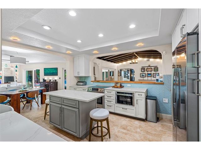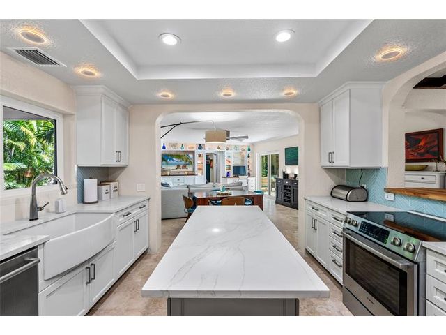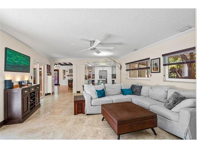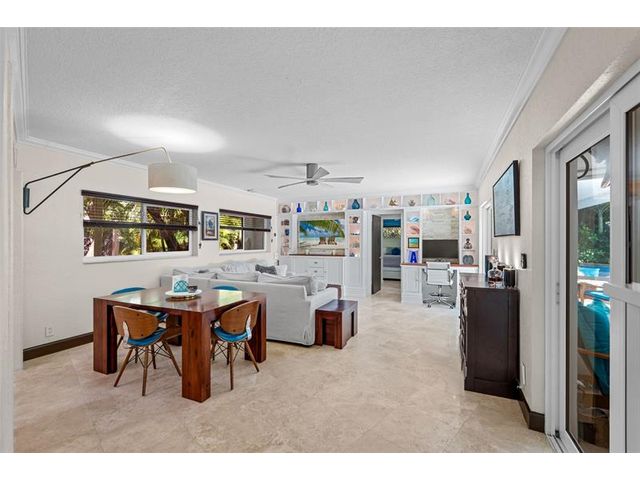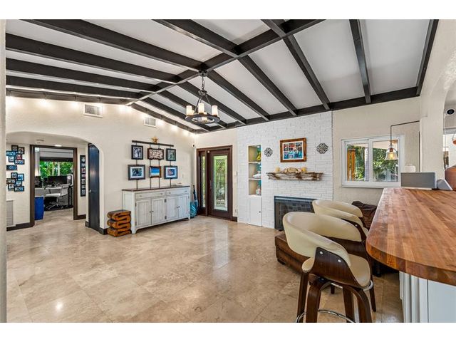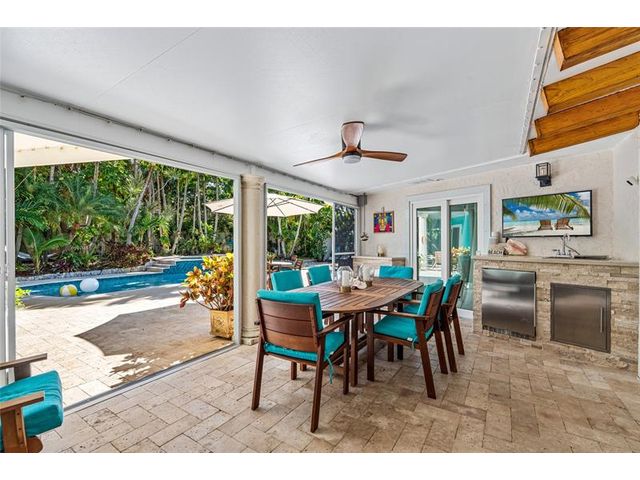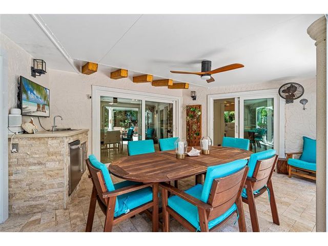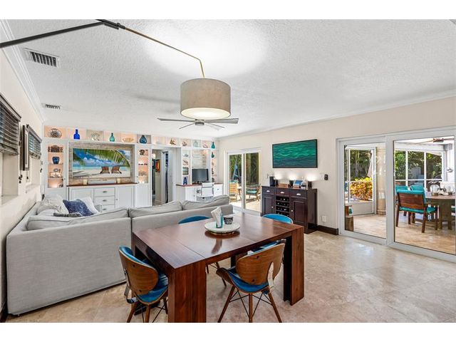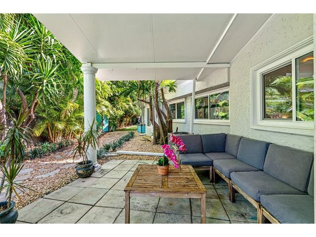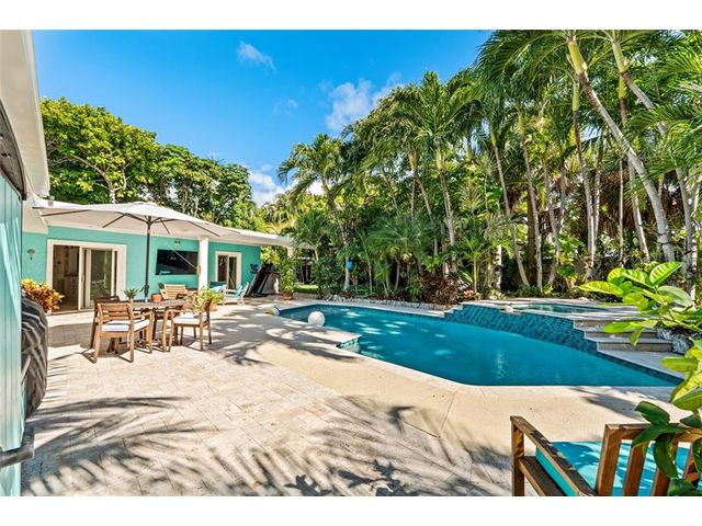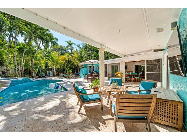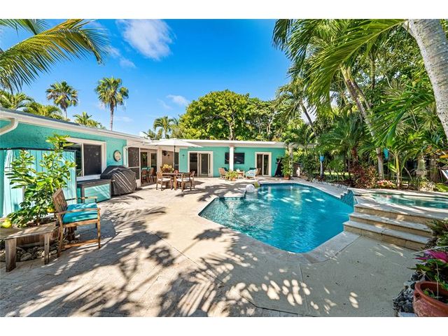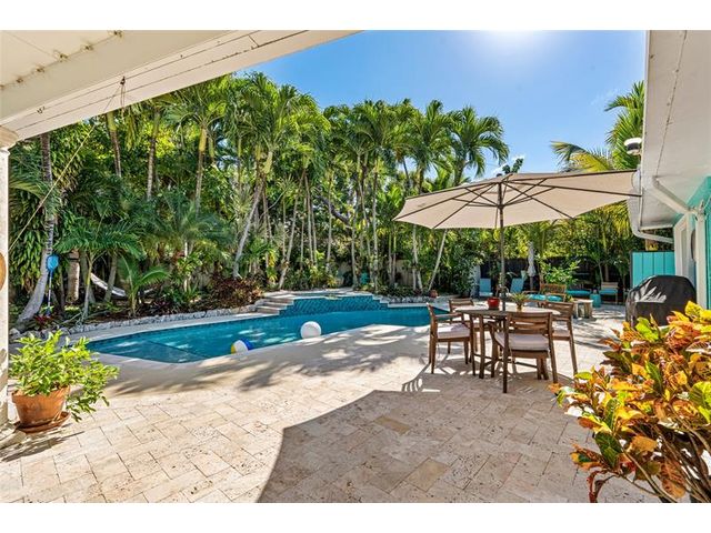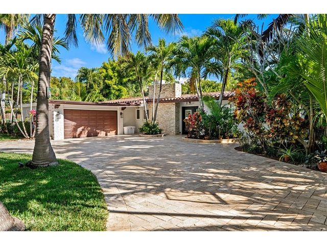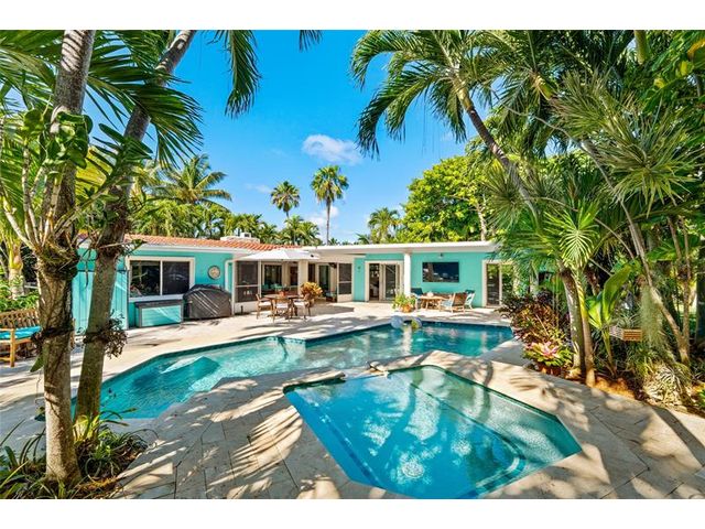 Unparalleled privacy & resort-style living await in one of Fort Lauderdale’s most exclusive neighborhoods! Enjoy the deeded private beach club & marina just steps away, plus walk to all the amenities of Ft. Lauderdale Beach! Gated privacy wall & fence surround this serene tropical oasis w/ heated saltwater pool & spa, expansive paved patio & Florida room w/ wet bar & retractable screens — perfect for entertaining. Set on a 16,180 sq. ft. oversized lot, this 2,550+/- total sq. ft. open-concept home boasts cathedral ceilings, Saturnia tile floors & a beautifully renovated kitchen. Abundant natural light, wood burning fireplace & custom built-ins add to the ambience. Add’l upgrades: new roof (2025), professional landscaping, travertine paved circular driveway & all-impact windows & doors.