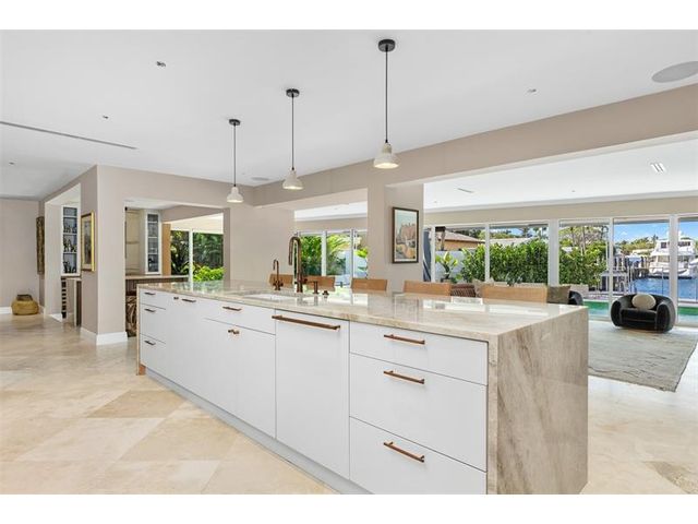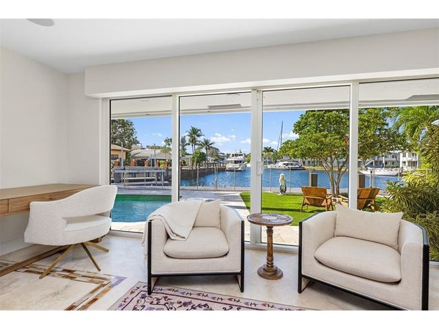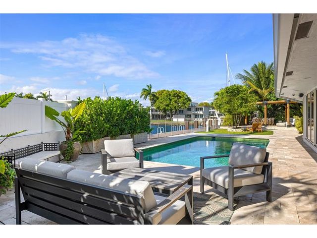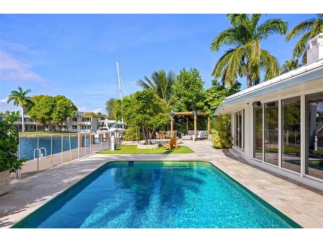 Experience refined waterfront living in this exceptional estate within the exclusive gated enclave of Sunrise Key. Boasting 87' WF on a wide turning basin w/ no fixed bridges & direct ocean access, this residence is perfectly suited for yachting enthusiasts. The open-concept design offers 5 bedrooms, expansive living spaces, a designer chef's kitchen & wet bar, and a serene primary suite w/spa-inspired solid handcut Travertine Bath/Vanities. Seamless indoor-outdoor living leads to a private waterfront retreat with patio, pool, and covered lounge area ideal for entertaining. Among the many updated features is a brand-new LG4 solar system w/full-home battery backup, which significantly offsets energy costs. Ideally located minutes from Las Olas Blvd, beach, dining, shopping, and FLL Airport.