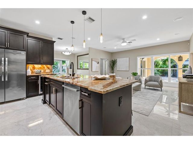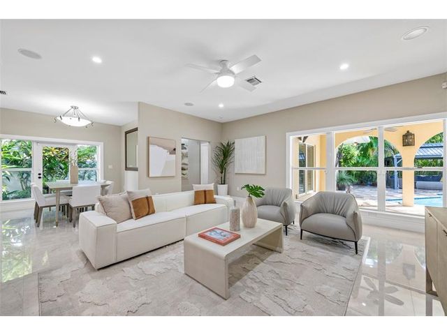 Fully gated, double lot, private oasis in the heart of sought-after Rio Vista, celebrated for its strong neighborhood vibe and central location. This exceptional home was completely renovated and thoughtfully expanded in 2011, including new plumbing, electrical, framing, insulation, flooring, windows, doors, AC systems, & a tankless water heater, with natural gas already prepped on the property. The chef’s kitchen features a Bosch dishwasher & Frigidaire Gallery appliances, seamlessly opening to the living area for effortless entertaining. A desirable split floor plan offers three bedrooms, two full bathrooms, and a convenient half bath. Outdoors, enjoy a pristine pool framed by lush, mature landscaping, multiple seating areas, and ample space for relaxing or hosting year-round gatherings.