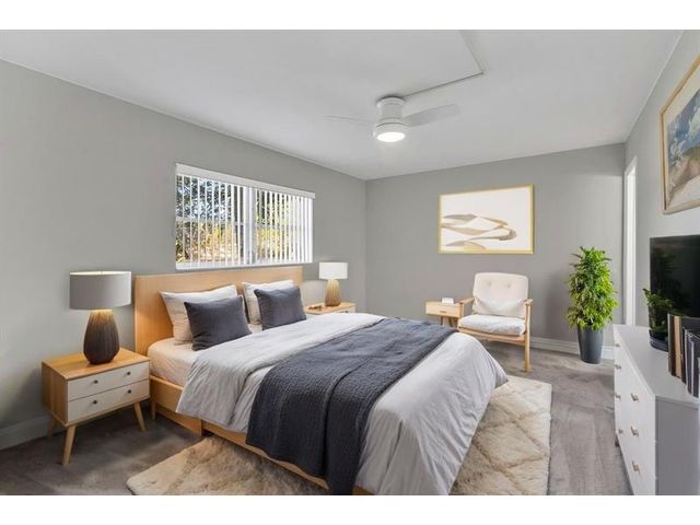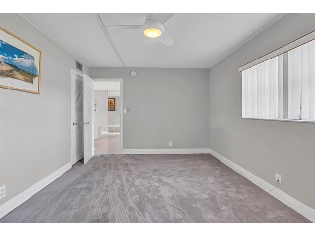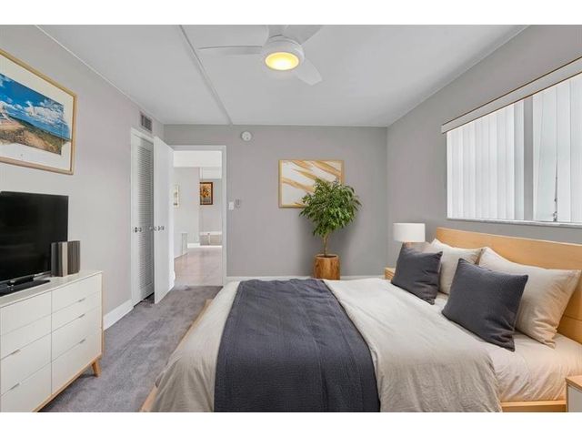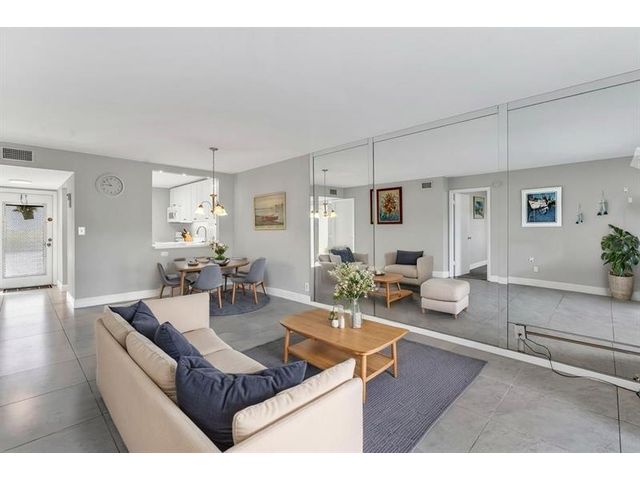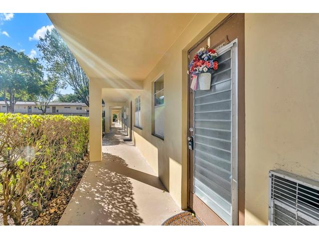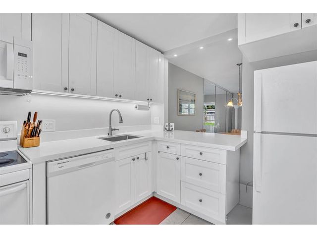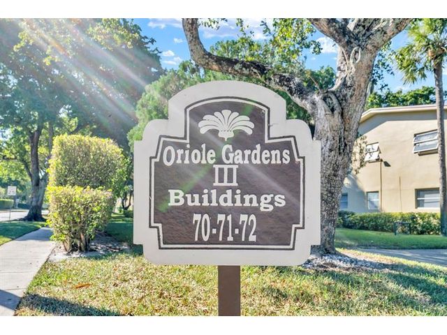 Welcome home to this well maintained first-floor 2/2 in Oriole Gardens—just a 7-min walk to the new Publix Plaza! Offering 990 sq ft with Eastern exposure, this light-filled unit features peaceful canal and garden views for serene living. The renovated kitchen shines with white shaker cabinets, quartz countertops, and modern finishes. The guest bathroom has been updated with a newer shower, and both bathrooms feature newer sinks. Newer carpet in the bedrooms adds comfort, while tiled living areas offer easy maintenance. The primary suite includes a walk-in closet and ensuite bath, while the second bedroom offers dual closets—perfect for guests or home office. Enjoy relaxing on your private patio overlooking the water. Newer carpet in bedrooms and space for a sitting area. This is the one!