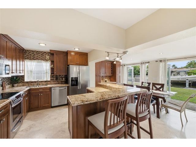 3b/1b on 60ft of deepwater with no fixed bridges. MOVE IN READY w/ granite counters, marble floors, stainless appliances, beautiful custom cabinetry, remodeled bathroom. Has mostly impact windows & doors except front windows - those have shutters. Permits in 2008 including roof, A/C, windows/doors, addition in rear. Beautiful deck on water with shed in back for storage. Whole house tented in 2021. Convenient location in Ft. Lauderdale under 5min to I95/I595, under 10min to the airport, under 10min to the cruise port, 3 miles to the ocean, 1.5 miles to Las Olas for shopping & nightlife and more, 5 miles to Hard Rock Casino & Hotel & 3 miles to the Turnpike.