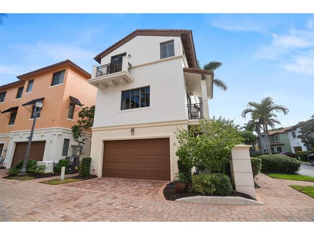 Storybook living in Library Commons! This corner-lot home offers a commanding neighborhood view and sits just steps from the community pool beyond a private, gated patio. The 1st floor features a bedroom/office with CUSTOM BUILT IN desk, Murphy bed, plus a convenient drop zone with a storage bench. The PRIVATE ELEVATOR or the updated stairs will lead you to the main level with NEW KITCHEN, oversized island, white cabinets, natural light, powder room, and more BUILT INS in the family room and dining area. The 3rd floor includes a spacious primary suite with walk in closet and large bath, laundry room, and an additional ensuite bedroom. Full-house, over-sized generator plumbed, no tank. Enjoy access to Mizner Park, Boca Library and the Brightline station. AC 2020, AC in garage too!