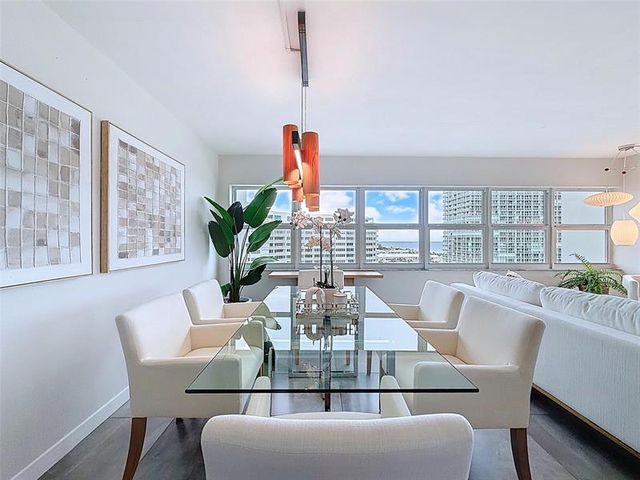 Watch the sunrise with your morning coffee and unwind at sunset with a glass of wine—all from the comfort of your home in the sky. Enjoy sweeping ocean, inlet, and downtown Fort Lauderdale skyline views from this fully renovated NE corner residence at Sky Harbour East. Perched on the 15th floor, this 2-bedroom plus den, 2-bath home features an east-facing balcony, impact glass, & water views from every room. ELSS upgrades are underway and paid in full by the seller, with fully funded SIRS reserves. Beachfront amenities include heated pool, fitness center, putting green, BBQ area, fishing pier, security, extra storage, and direct beach access. Prime Harbor Beach location near Las Olas, Pier 66, dining, airport, Brightline, and major roads. Washer and dryer in unit.
