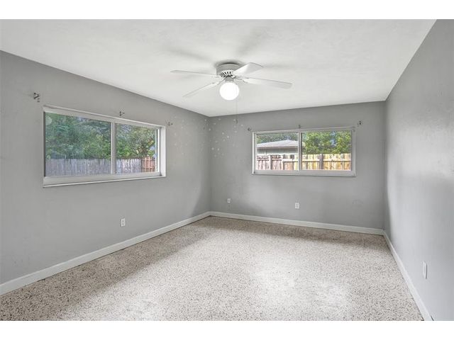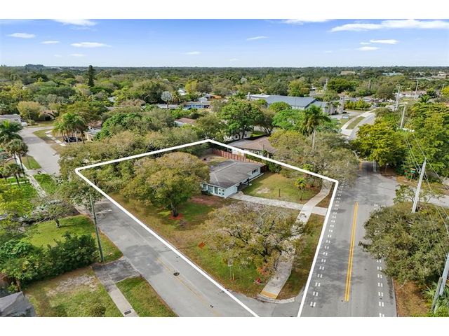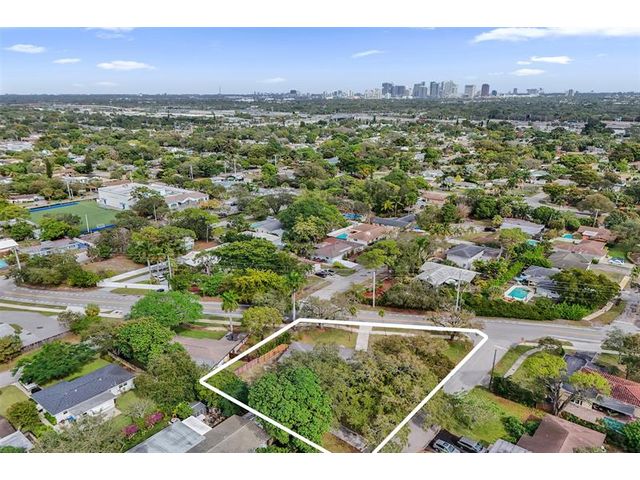 Your EXPANSIVE CORNER LOT thoughtfully designed 3-bedroom, 2.5-bath home offers privacy, space, and effortless living. Terrazzo floors flow throughout the split floor plan, with impact windows, a tankless water heater, interior laundry, and an attached one-car garage. Enjoy lush landscaping, mature trees, a screened porch, and a fully fenced yard in your outdoor oasis. A detached workshop with a half bath is ideal for hobbies, extra storage, or a private workspace. This property features two driveways providing ample parking with room for an RV or boat. A public boat ramp with ocean access is just one mile away. Property is close to downtown FLL, FLL Airport, and major highways. With this ideal location and room for a pool this is rare find won’t last!