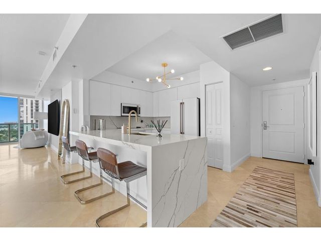 MODERN, BRIGHT & LUXURIOUS! THIS HIGH FLOOR CORNER UNIT FEATURES 3BEDROOM/2 BATH W/ A VIBRANT VIEW OF LAS OLAS ALL THE WAY DOWN TO THE OCEAN! THIS FLOW THROUGH UNIT FEATURES 2 TERRACES, MARBLE FLOORS THROUGHOUT, MODERN WHITE HIGH GLOSS KITCHEN CABINETRY, QUARTZ WATERFALL COUNTERTOPS, NEW APPLIANCES, OPEN LIVING AREAS, MOTORIZED WINDOW TREATMENTS, LAUNDRY ROOM & NEW AC. THE MASTER SUITE FEATURES WALK-IN CUSTOM CLOSET, ENSUITE BATH W/ DUAL MARBLE VANITIES, DEEP SOAKING TUB & SEPARATE GLASS ENCLOSED WALK-IN SHOWER. 2 GUEST ROOMS, EXTRA CLOSETS & PANTRY. PERFECT LAS OLAS LOCATION IN THE CENTER OF IT ALL! FIVE STAR BLDG,24 HR FRONT DESK,VALET& SECURITY. ROOF TOP POOL & SPA, FITNESS CENTER, CLUB ROOM, THEATER, BUSINESS CENTER, & DOG WALK AREA. ASSIGNED GARAGE PARKING SPACE AND STORAGE INCLUDED.