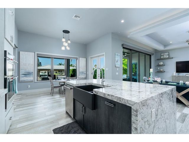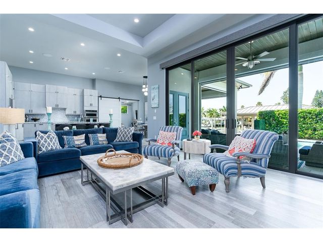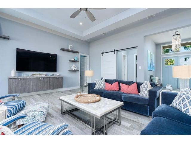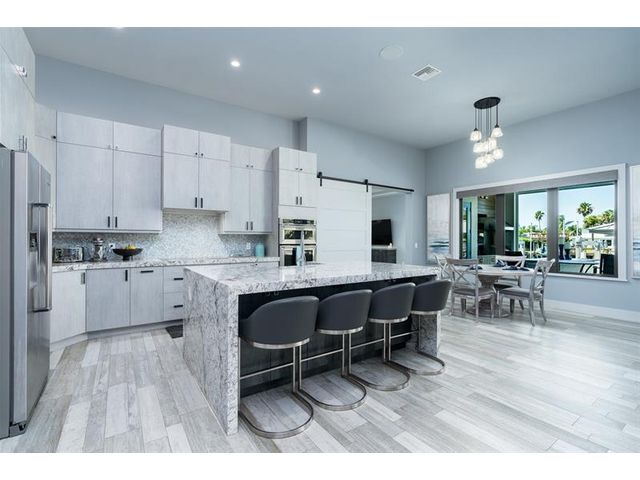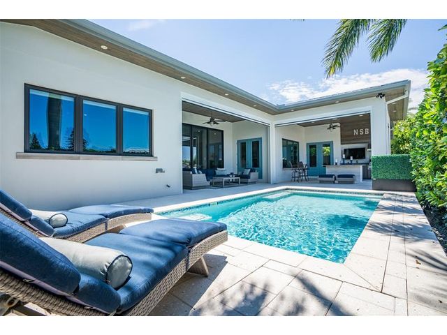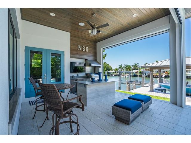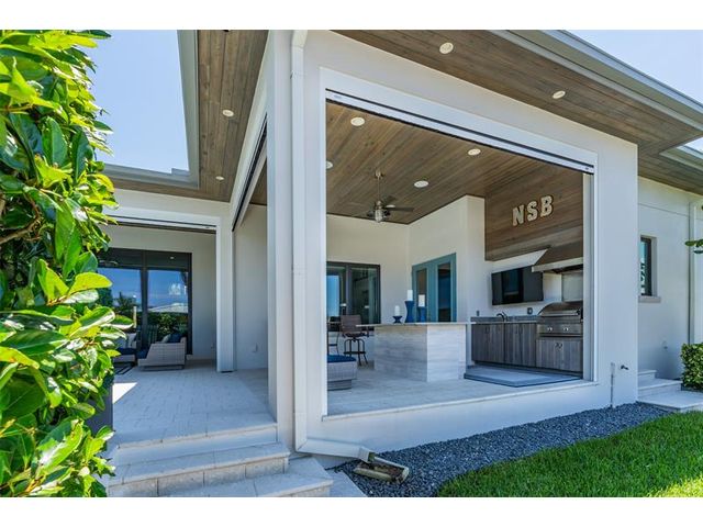 Chance-of-a-lifetime to own this luxury waterfront estate on Coronado Island in the prestigious Venezia boating community of New Smyrna Beach, minutes from the beach. Built in 2018, this meticulously maintained 4BR/3.5BA custom home features premium concrete block construction, elevated flood rating, impact windows/doors, Italian limestone exterior accents, and exquisite designer finishes throughout. Highlights include a chef’s kitchen with waterfall quartz island, KitchenAid appliances, induction cooktop, wet bar, and wine fridge; a spa-like primary suite; Tesla charger; smart-home controls; whole-house generator; and heated saltwater pool. Boater’s dream with 20,000-lb and 8,000-lb covered lifts, floating dock, fish tackle room, and summer kitchen. Extensive recent upgrades.