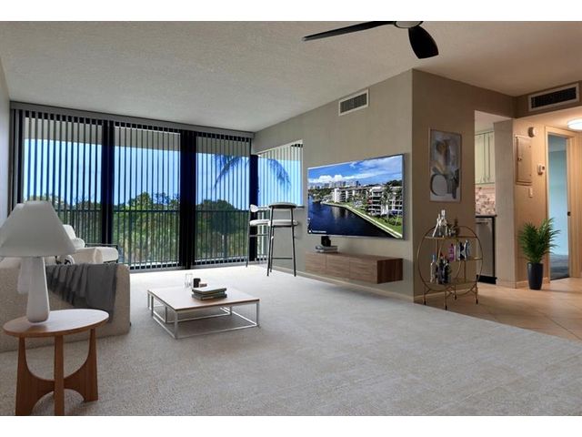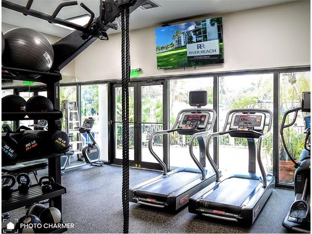 Super private condo with east/southeast facing balcony - tons of natural morning sunlight. 501 is a well cared for 1 bed / 1.5 bath, 900 SF with a cozy balcony. Whether you're sitting at the breakfast bar, living room or bedroom: you have water views from every window. NEW floor to ceiling impact windows and sliding doors. Totally remodeled kitchen with newer SS appliances, custom cabinetry and hardware. Reach is a private island in the heart of Ft Lauderdale on South Fork of the New River. Ocean access boat dockage just $40 per ft - per year for boats to 50 ' OAL. No fixed bridges. 24/7 security. 3 heated pools, pickleball, tennis court, gym, pet area, community bldg., kayak storage, car wash areas, freshly landscaped. Central to downtown. Can rent first year, 2 pet minimum.