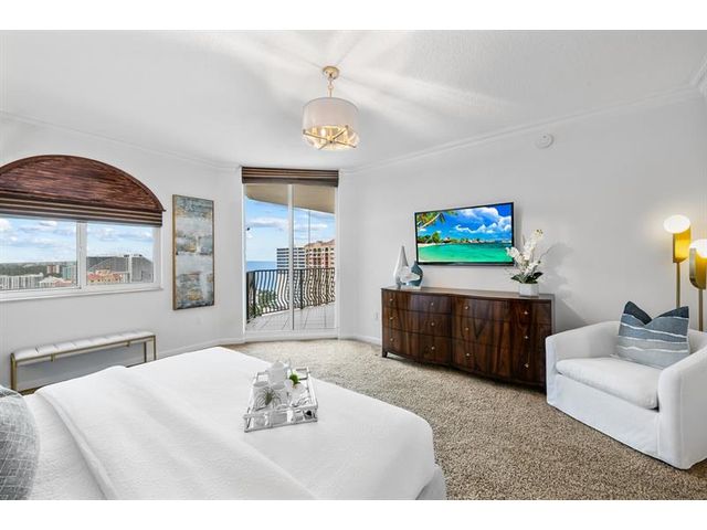 Enjoy breathtaking Panoramic, Intracoastal Waterway and Ocean views from this 24th-floor residence, offering a direct elevator from garage into the private foyer. As soon as you step inside, you'll be amazed with the views and the spacious & open layout. The master suite includes a private bathroom with a shower, jacuzzi tub & dual sink vanity. Both bedrooms are generously sized featuring large closets. Tall sliding glass doors in all rooms allow you to step outside onto an oversized 309 SF terrace great for dining, lounging & entertaining. Jackson Tower is a luxury condominium located in the heart of Ft. Lauderdale Beach, just steps away from the water taxi,new Las Olas marina,shops & restaurants. Pet friendly & electric car ready. Additional Parking Space Available for purchase!!!