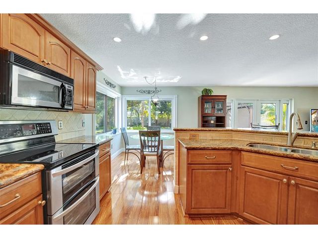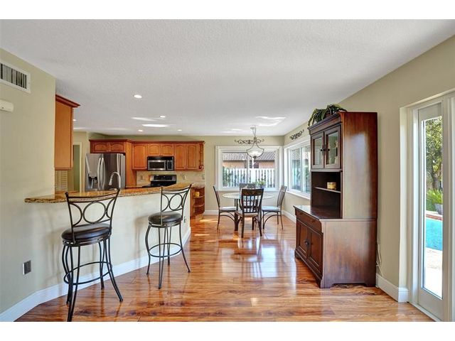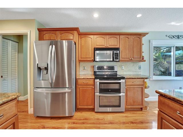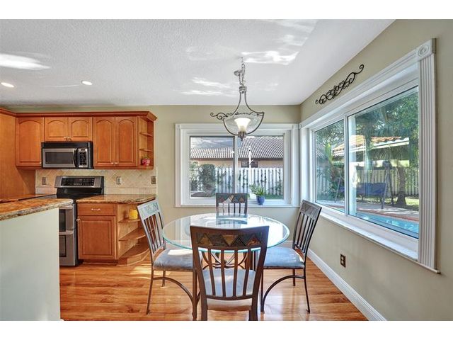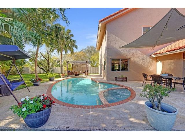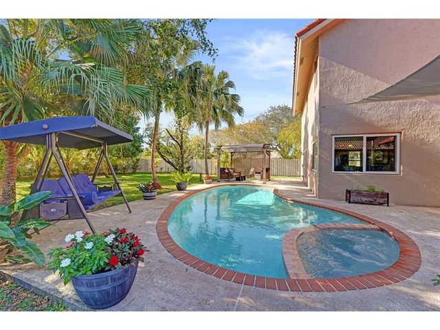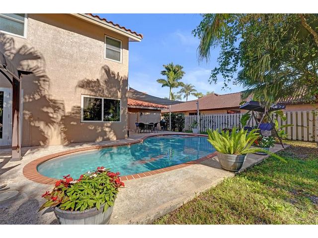 This beautiful 4 bedroom 2.5 bath pool home sits on a spacious (one of the largest) private corner lot and offers comfort and style. You will have peace of mind with the newer roof, impact windows and doors, a new top of the line a/c and hot water heater. You will find formal living and dining rooms perfect for entertaining along with upgraded kitchen featuring wood cabinets, granite countertops and newer appliances. Large pantry, Eat in area and snack counter. Awesome inside laundry room. Laminate floors! The generous primary suite features walk in closets, private bath with dual sinks and separate tub and walk in shower. The open pool area leads to an inviting backyard with remodeled pool. Oversized backyard! Perfect for hosting gatherings. A beautiful home that is truly move in ready!