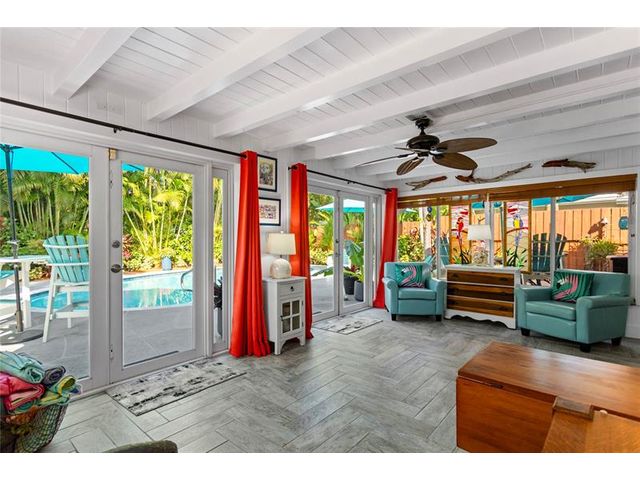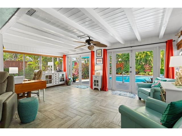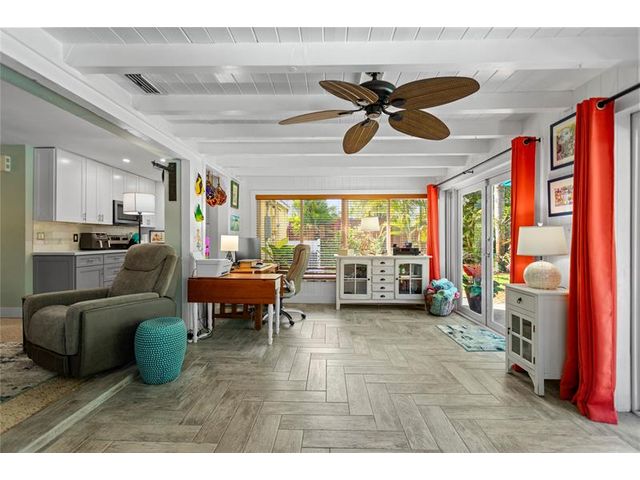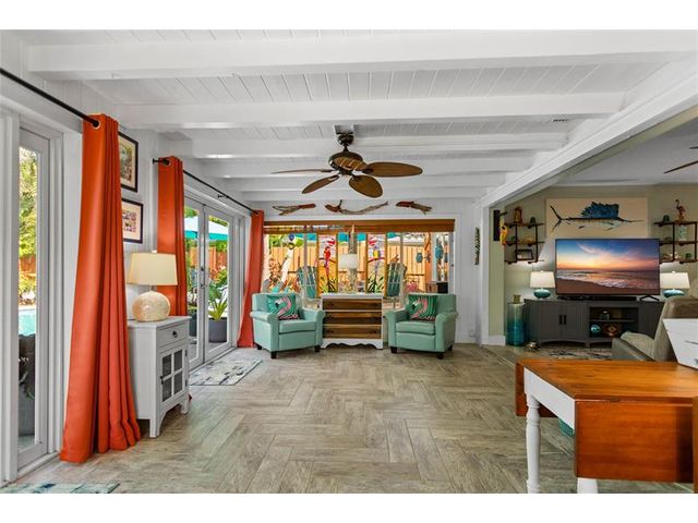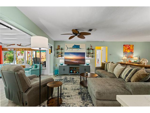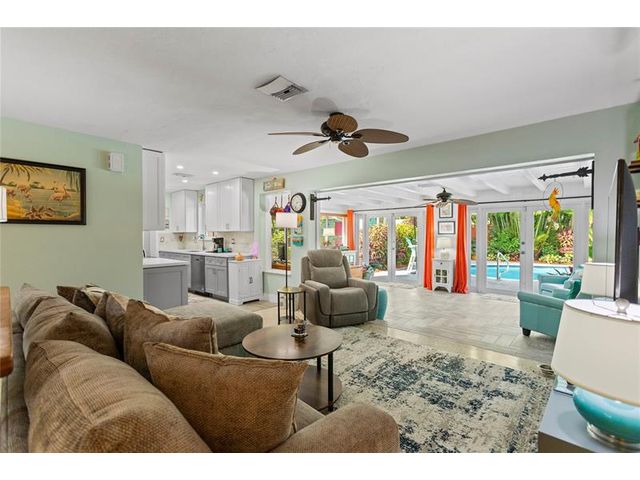 Tucked away on a secluded private dead-end street in a tranquil wooded setting, this immaculately maintained split-plan home offers rare privacy, lush surroundings, and extensive upgrades throughout. The property is richly landscaped with a curated collection of exotic palms and plants, highlighted by a striking red ceiling wax (lipstick) palm and a mature key lime tree. A spacious Florida room with expansive windows & French doors overlooks the entire backyard, gardens, and heated pool—creating a seamless indoor-outdoor living experience. The nearly fully private backyard is enclosed by a tall wooden fence and features a pool completely rebuilt in 2023, outdoor shower, extensive front and rear landscape lighting, and a shed. The remarks continues in the Supplement Remarks section.