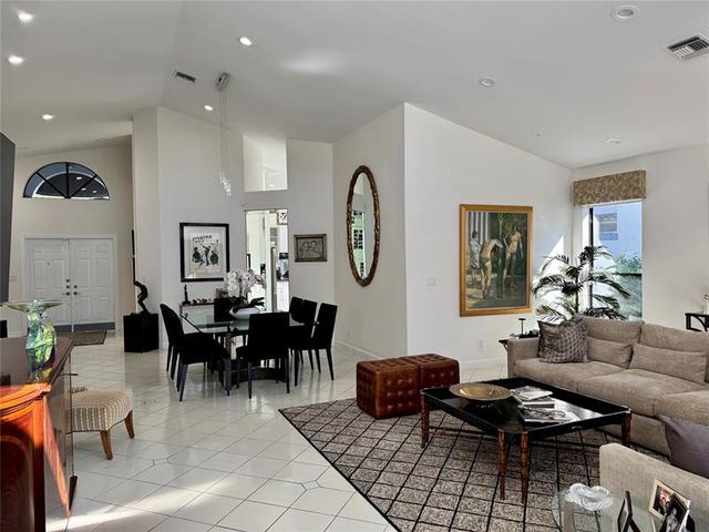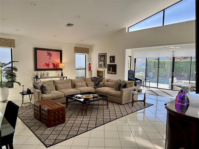 If you've been searching for the perfect one-level home on a quiet tropical interior lot, this is the one! Filled with natural light, this beautifully maintained residence features an open, airy floor plan and a glass-enclosed Florida room overlooking a stunning patio & heated pool, ideal for both relaxation & entertaining. The 3-bedroom layout includes a versatile 3rd bedroom/den & showcases pride of ownership throughout. Additional highlights include a cabana bath, an eat-in kitchen, spacious living room & dining areas, & a generous primary suite w/ 3 closets, two walk-ins. All of this is just a short walk to the clubhouse, offering the best of Florida living. Golf course, tennis, pickleball, spa, gym, restaurants, schools, shopping, & houses of worship. Equity membership is required.