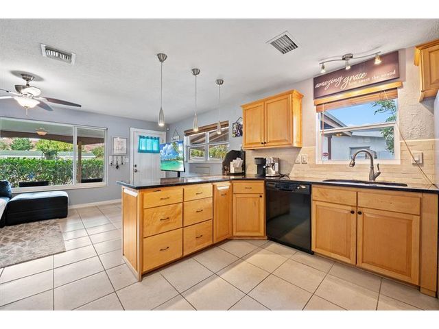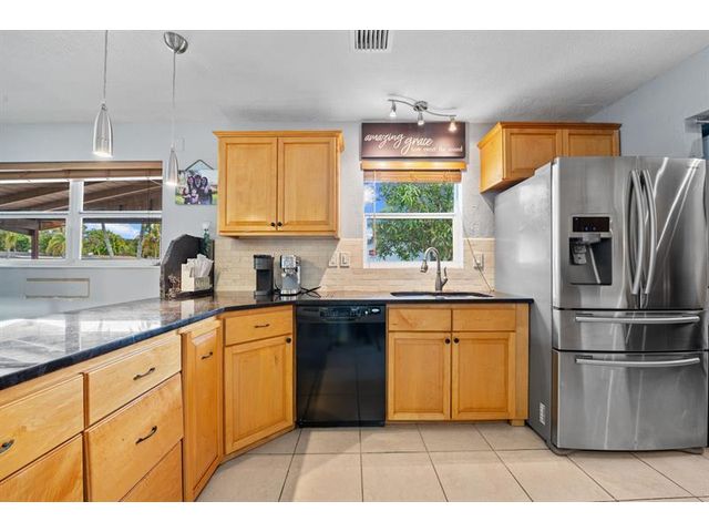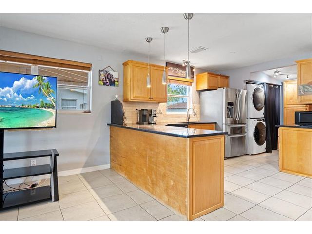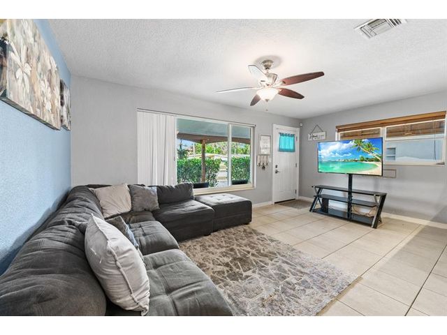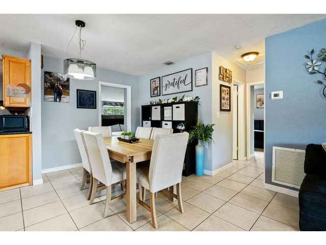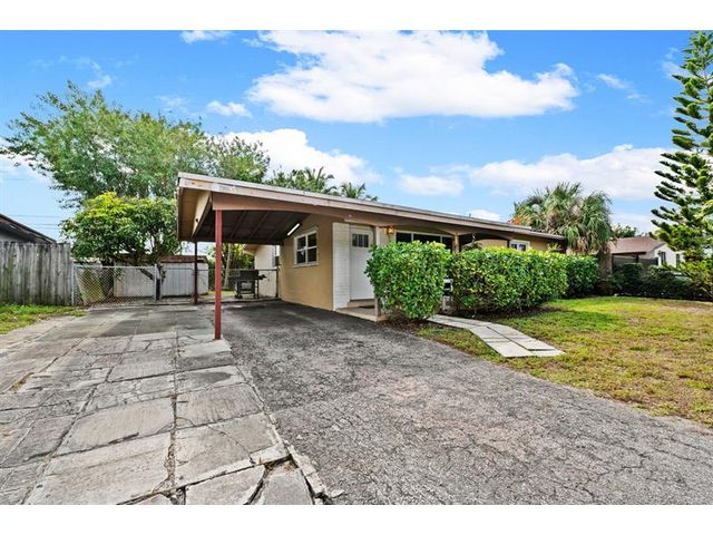Located in Margate Estates, this UPDATED home features 3 bedrooms 2 baths with spacious car port and completely FENCED YARD. Kitchen with granite counters, breakfast/snack bar for extra dining, wood cabinets and stainless steel refrigerator & range. Tiled flooring throughout. NEWER SOLAR PANELS ON ROOF HELPS PROVIDE A LOW ELECTRIC BILL. ROOF 2013, WATER HEATER 2024, AC 2008 & ALL UPGRADED ELECTRIC PANEL. Yard is big enough to add a pool. Covered gazebo with lighting great for entertaining & 2 sheds for extra storage. PARTIAL IMPACT WINDOWS & PANEL SHUTTERS. BEST OF ALL NO HOA!!