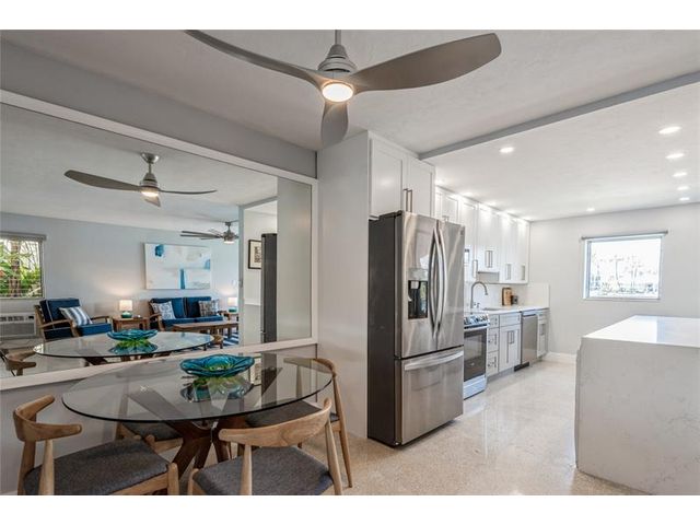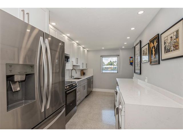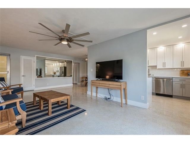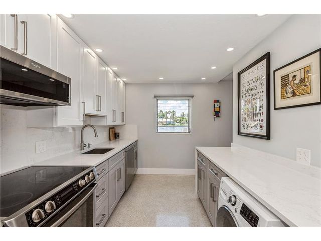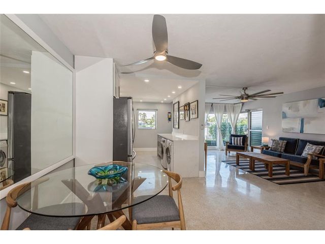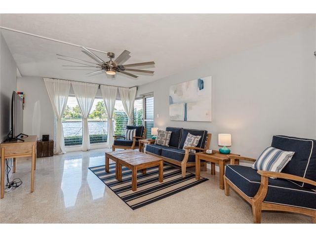 Direct Intracoastal views with a Wow factor. Nicely updated with a beautiful kitchen, stylish bathroom and a washer & dryer. This ground floor condo has polished terrazzo floors throughout. The Panama Club is a quiet and tropical oasis only a few short blocks to the Beach. This boutique Mid-Century Modern gem has only 10 condos, and a heated pool. Enjoy the vibrant North Beach Village neighborhood offering outdoor cafes, a bakery and shoppes.