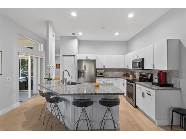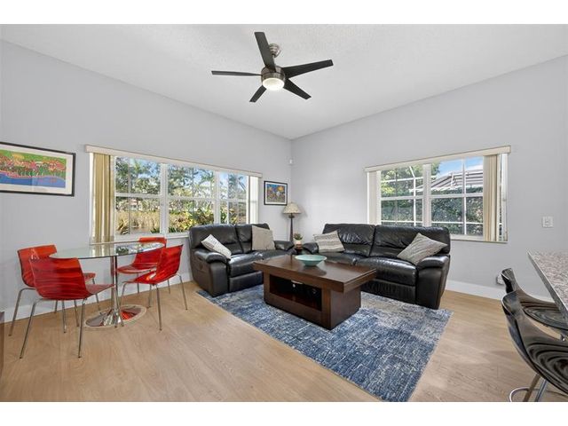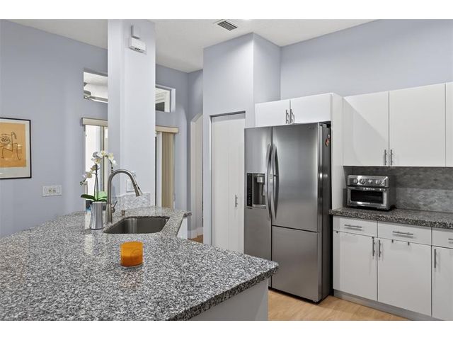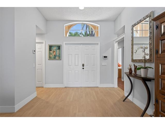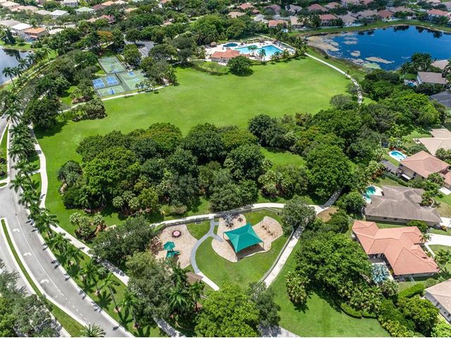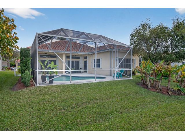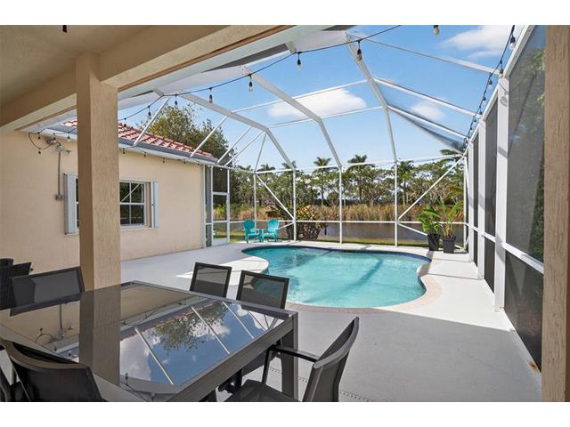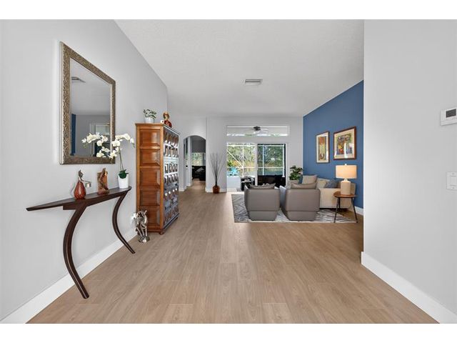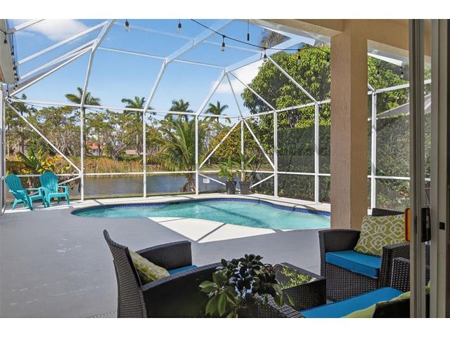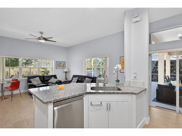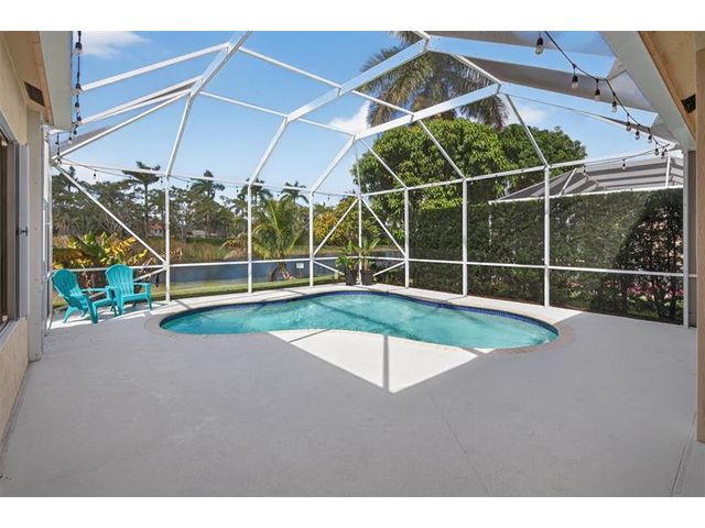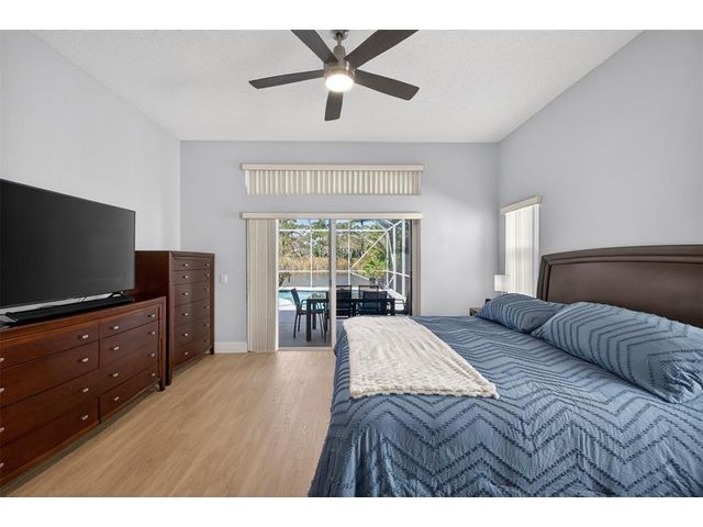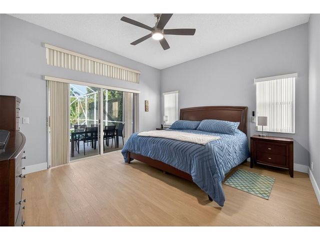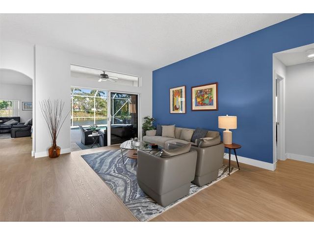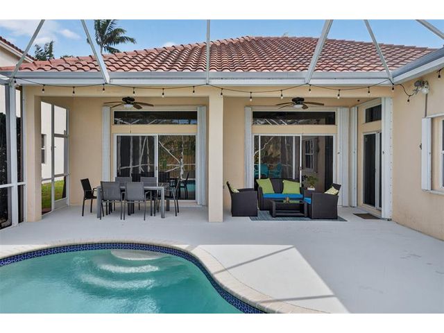 Beautiful one-story lakefront home in the gated community of The Ridges. This 4 bedroom, 2.5 baths residence is in excellent condition and features a NEW roof (2022). Enjoy breathtaking, unobstructed lake views from your private backyard with pool and enclosed patio, perfect for relaxing or entertaining while taking in the serene water views. The home offers laminate flooring throughout, a remodeled kitchen with granite countertops, and a beautifully updated master bathroom. Accordion shutters throughout provide full storm protection and peace of mind. Located in an excellent area near top-rated schools, parks, shopping, and major highways. Community amenities include a clubhouse, pool, playground, pickleball, basketball and volleyball courts, plus picnic and BBQ areas. A must see!