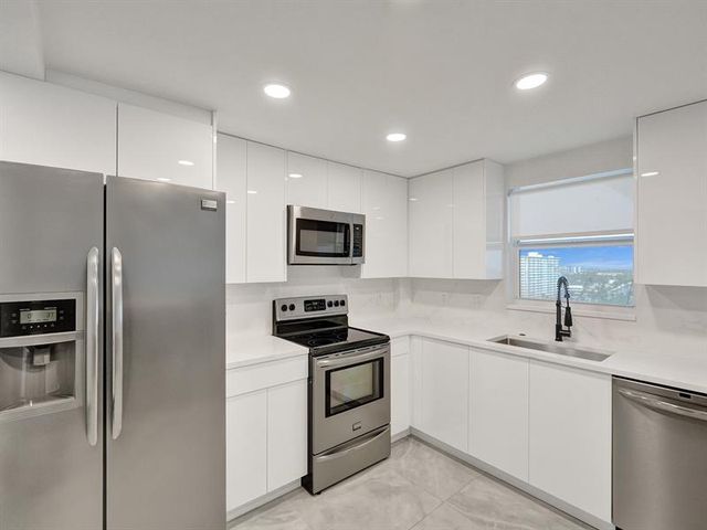 Beautifully remodeled corner unit, offers a spacious one bedroom, 1.5 bath layout on the prestigious Galt Ocean Drive. Widely regarded as one of the most desirable locations in the area. Fully renovated with high-end finishes and meticulous attention to detail, this move-in-ready unit combines modern elegance with functional design. Features include SS appliances, porcelain flooring, newly updated bathrooms, generous walk-in closet, washer and dryer, impact windows, and more. Residents enjoy an exceptional array of amenities, including a swimming pool, BBQ area, two fitness centers, game rooms, private movie theater, reading lounge, clubhouse, 24/7 doorman + security, secure key fob entry, direct private beach access, beach chairs+ cabanas, bicycle and beach equipment storage.