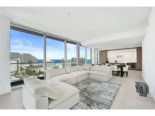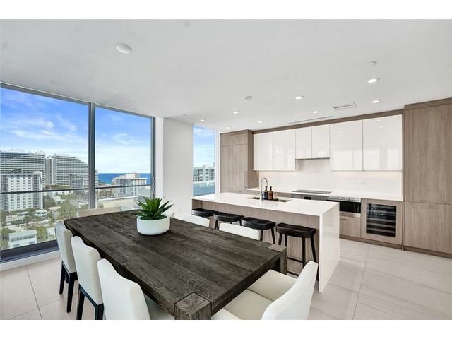 Elevated beachfront living begins in this brand-new construction 12th-floor Cobalt Residence at Selene Oceanfront. The 2-bedroom, 2.5-bath home captures Intracoastal, ocean, and downtown skyline views. Designed with 9'8" ceilings and a 10-ft-deep oversized balcony, the residence features an open-concept floor plan with porcelain tile flooring throughout. Kitchen appointed with Wolf appliances, Sub-Zero refrigerator, and wine cooler. Spacious primary suite with walk-in closet. Full laundry room. Walls of glass fill the home with natural light. Valet parking included. Residents enjoy resort-caliber amenities including dual pools, fitness studio, golf simulator, private theater, social lounge & dog park. Prime Fort Lauderdale Beach location moments from Las Olas Marina and Las Olas Boulevard.