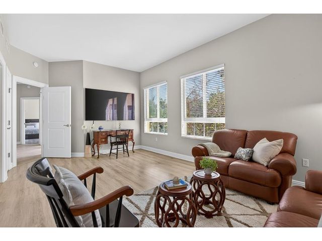 Situated in the most sought-after Clubhouse building, this beautiful, meticulous, light, bright and airy 2BD/2.5BA spacious condo with generous covered tiled patio offers a welcoming open layout with natural light throughout. Neutral tile flooring throughout living area, luxury vinyl in bedrooms. Spacious 2nd primary suite with ensuite bathroom, has plenty room for its own lounge area. Versatile living space with room for formal dining & breakfast area. Granite kitchen with wood cabs, stainless appliances, snack bar + pantry. Impact sliding glass doors lead to covered balcony overlooking lush greenery. Clubhouse building includes tons of amenities, heated pool, gym, restaurant, beauty salon, library, card room & more! Welcome to Weston's most exclusive, upscale 55+ community, The Palms!