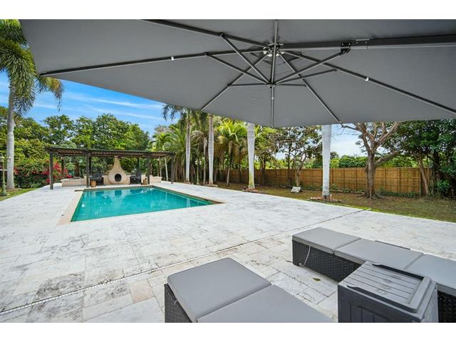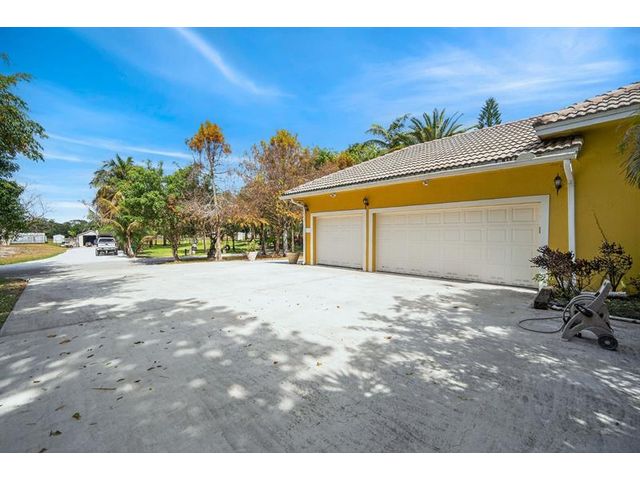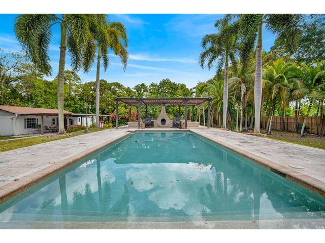 Experience modern comfort and rural tranquility on this 1.18-acre estate. This 3-bed, 3-bath residence with a 3-car garage offers 2,374 sq. ft. of light-filled space, high ceilings, and a chef’s kitchen with stainless appliances. A standout feature is the detached independent building, ideal as a guest house or private office. The primary suite is a true sanctuary, boasting 'his and hers' vanities, a Jacuzzi, and dual shower entries. Enjoy direct access to the private pool and a serene, covered lounge area. Perfectly located near major highways and city conveniences, this property offers a privileged lifestyle with plenty of room to grow. Your equestrian-friendly paradise awaits in Southwest Ranches. Additional 4th Bathroom in Detached Structure.