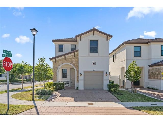 Like-new 2023 corner home located in the gated AquaBella community, offering resort-style amenities including a clubhouse, pool, gym, playground, and sports courts. Situated in prime Hialeah Gardens (33018), near new development, shopping, and major highways. The open-concept layout features an eat-in kitchen, dining area, and spacious great room. All four bedrooms are located upstairs. No carpet—luxury tile plank flooring on the stairs and second floor. Enjoy a large backyard with room for a pool, storm panels included, and ample parking.