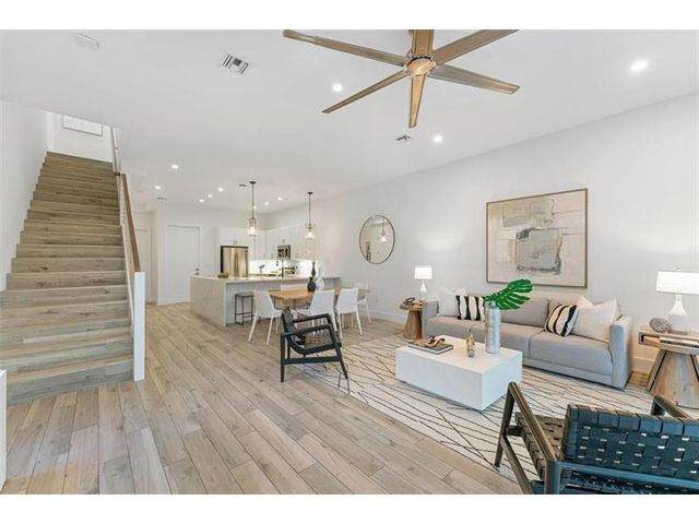Modern 2-story townhome (ground-floor living) in Sailboat Bend — Fort Lauderdale Riverwalk location — built in 2019, approx 2,000 sq ft, and with NO HOA. Bright, open main level designed for single-floor living with an easy-flow layout, beautiful modern finishes, and abundant natural light. Chef-ready kitchen features quartz counters, stainless appliances, subway-tile backsplash, and breakfast bar opening to the living/dining area. Private owner’s suite plus additional bedrooms and a flexible loft/office provide WFH versatility. Private fenced patio and bedroom terrace. Steps to W Las Olas/Himmarshee, dining, shopping, marinas and the Riverwalk — a prime Fort Lauderdale neighborhood.